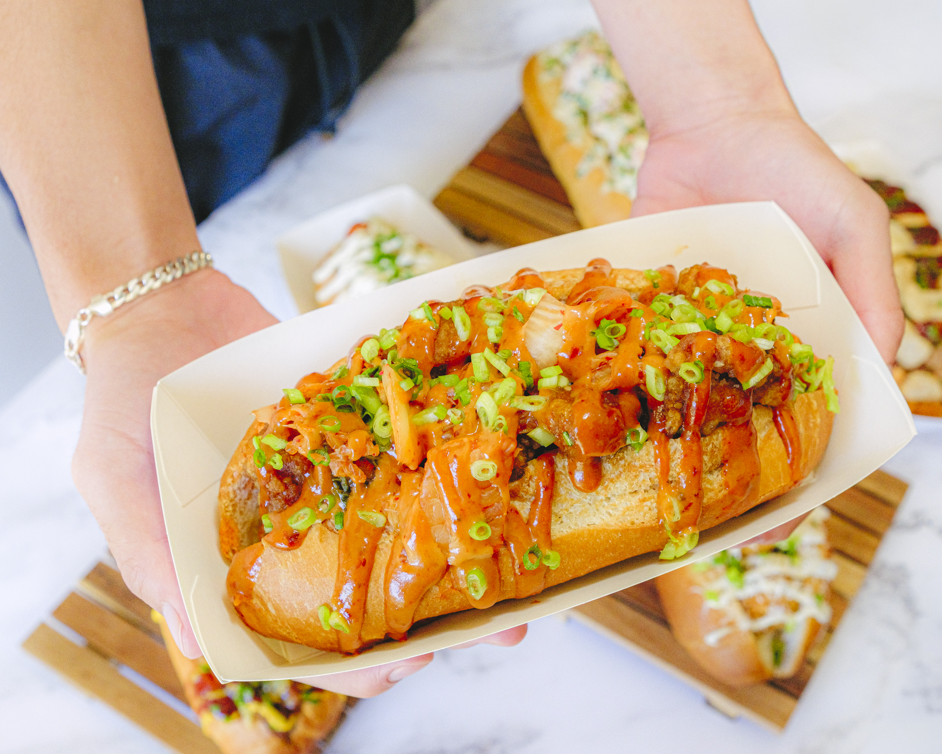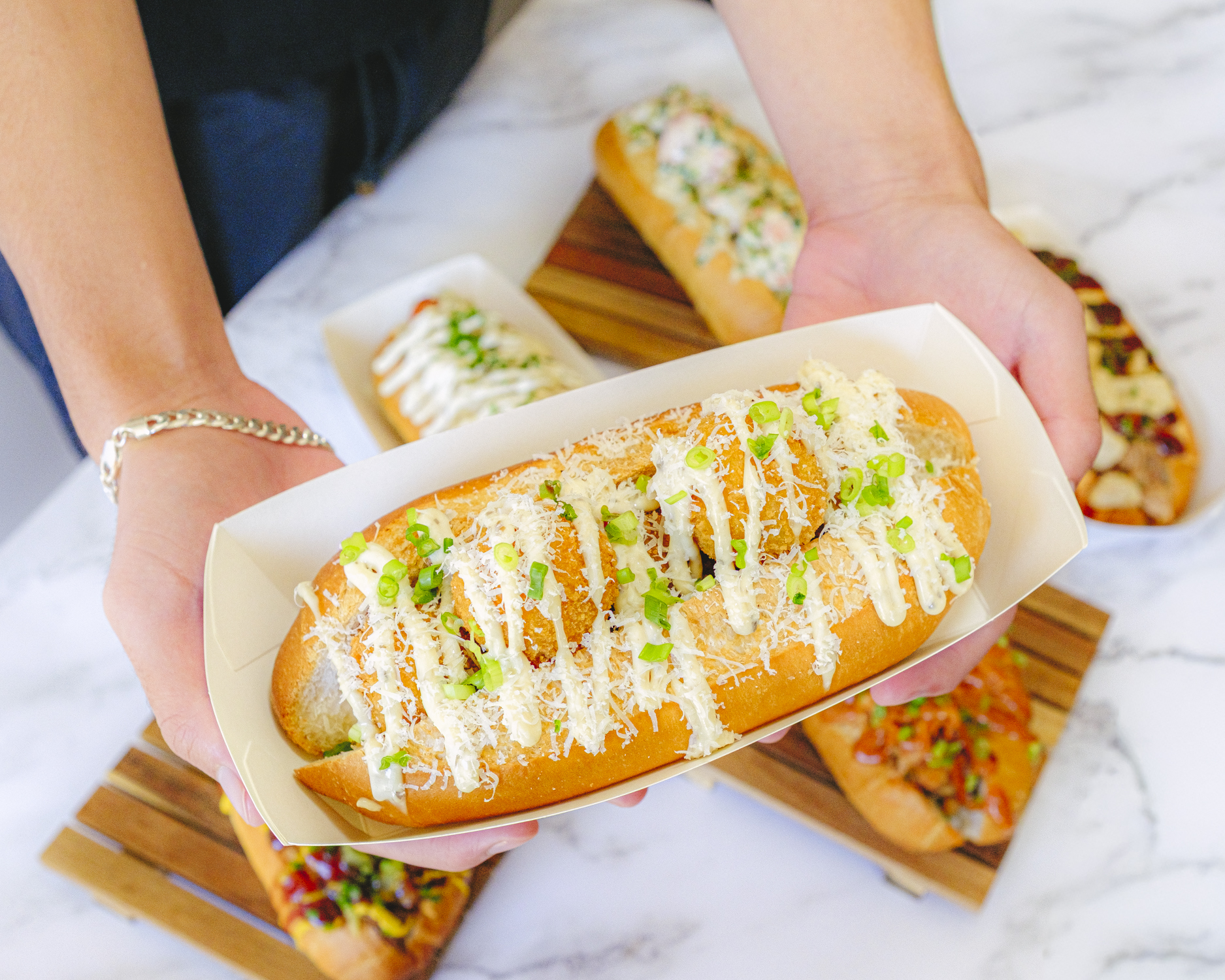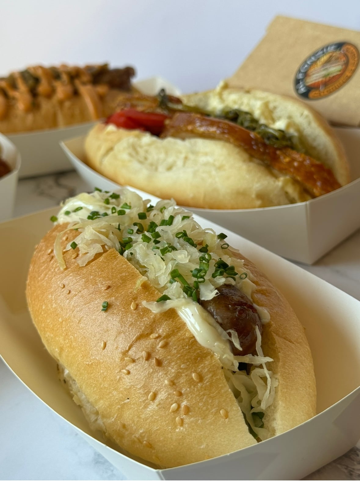 Each soft roll is stacked with either smoky meats, a juicy bratwurst, or golden arancini- always served with our finest hot chips.